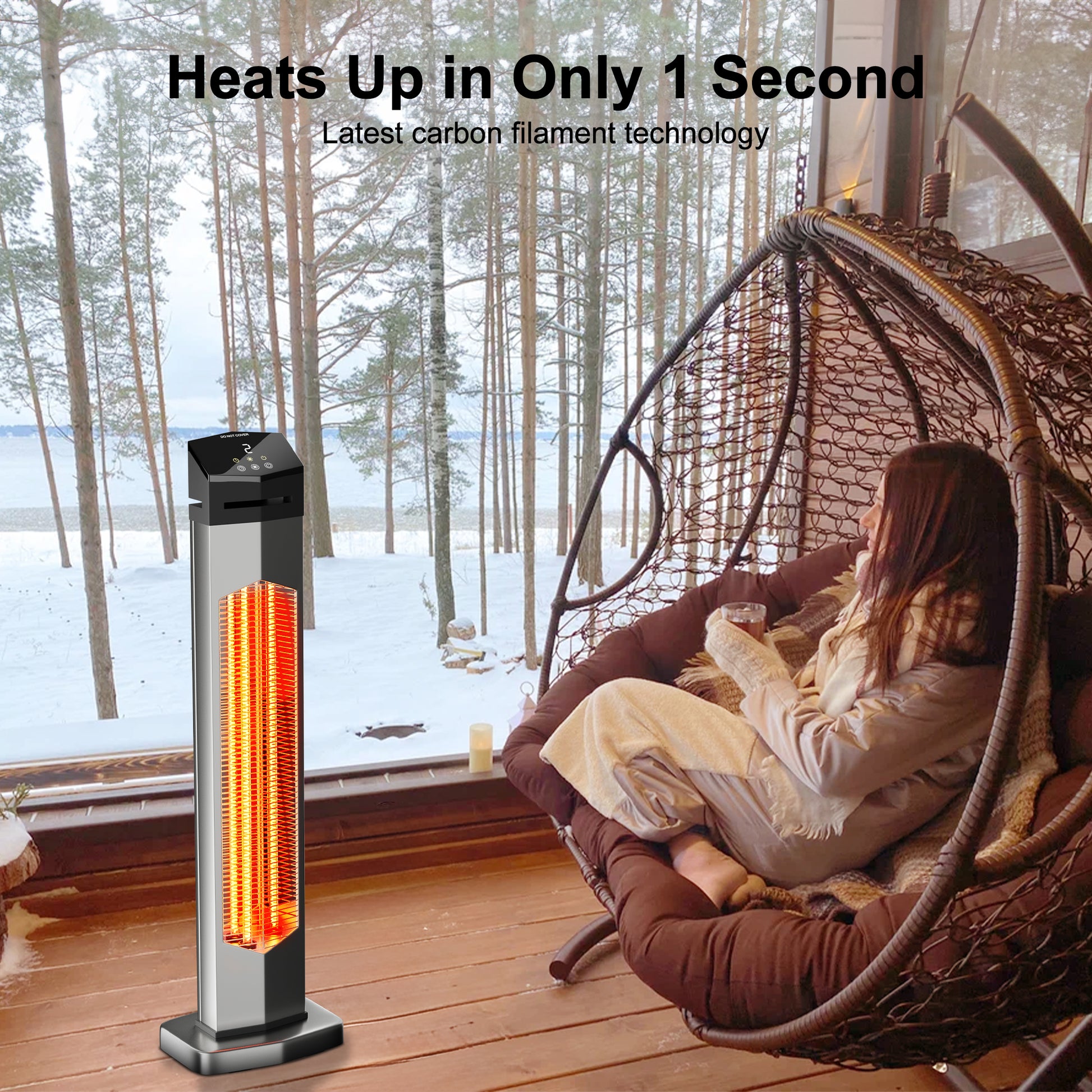 37IN Outdoor Patio Heater, Portable Space Radiant Tower Heaters with IP54 Waterproof,12H Timer,Large Room Heater for Garage Backyard Porch Balcony Silver