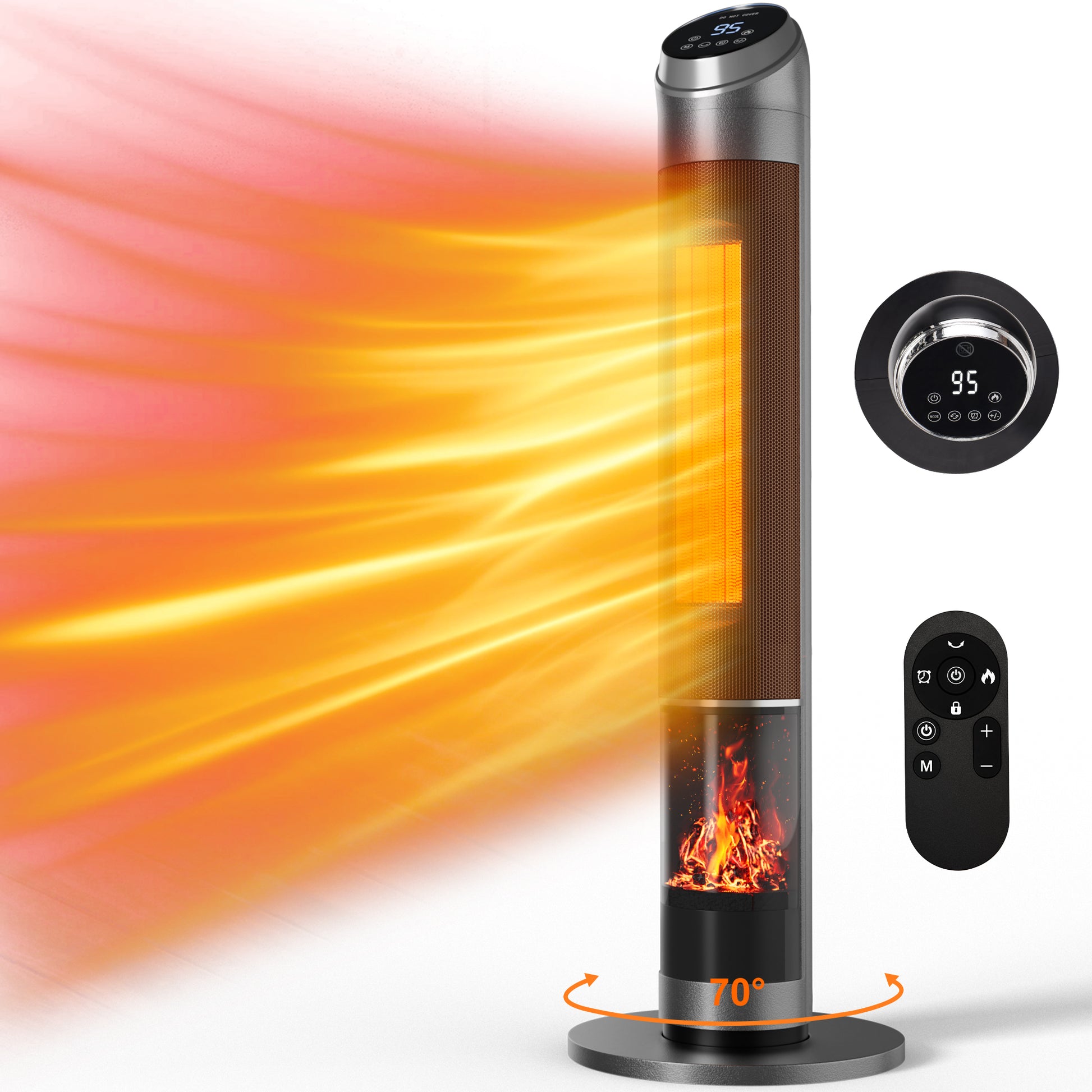 38in Large Floor Portable Electric Heaters For Indoor Use,1500w Tower Space Heater,70°Oscillating Ptc Ceramic Heater With Remote Control,24h Timer For Bedroom Grey