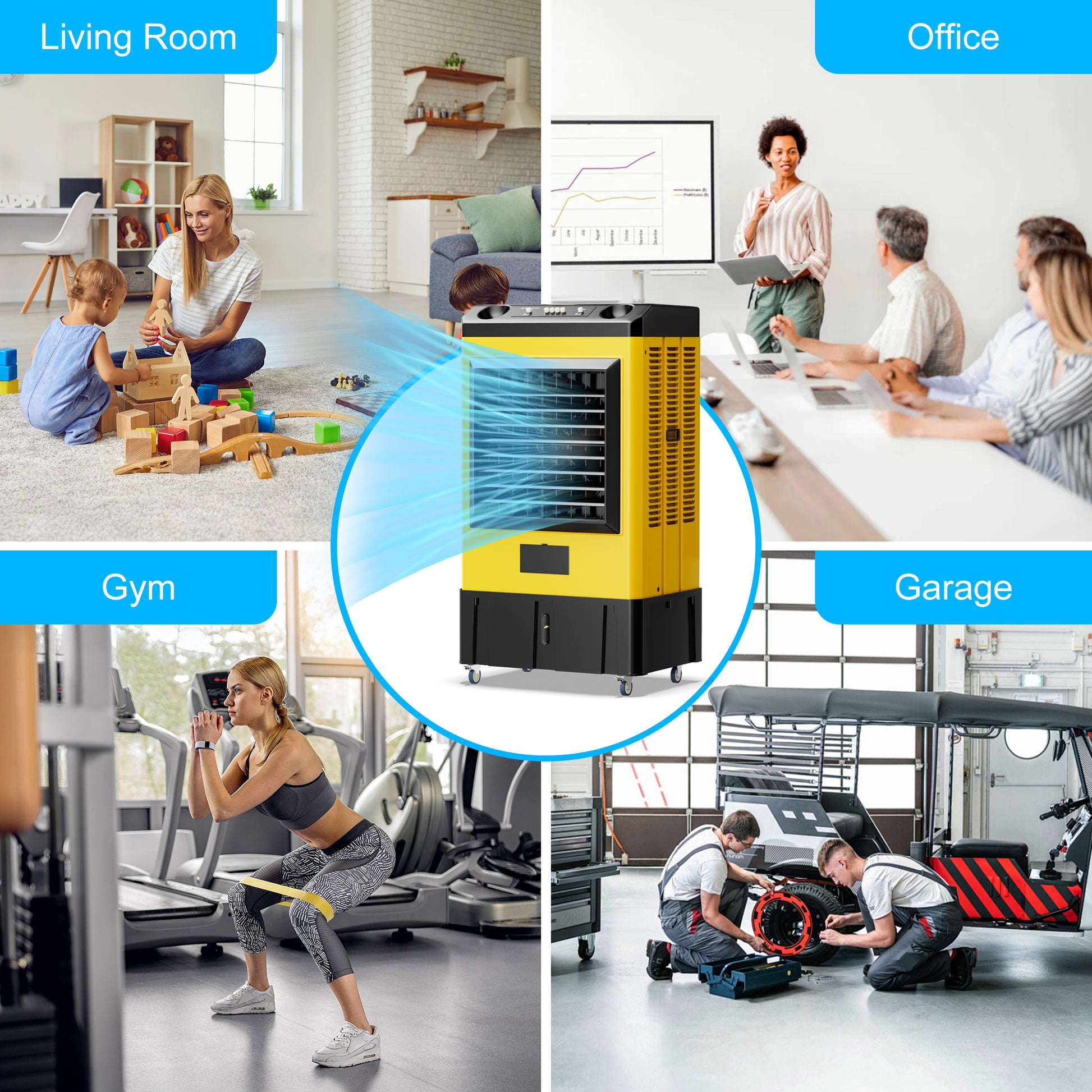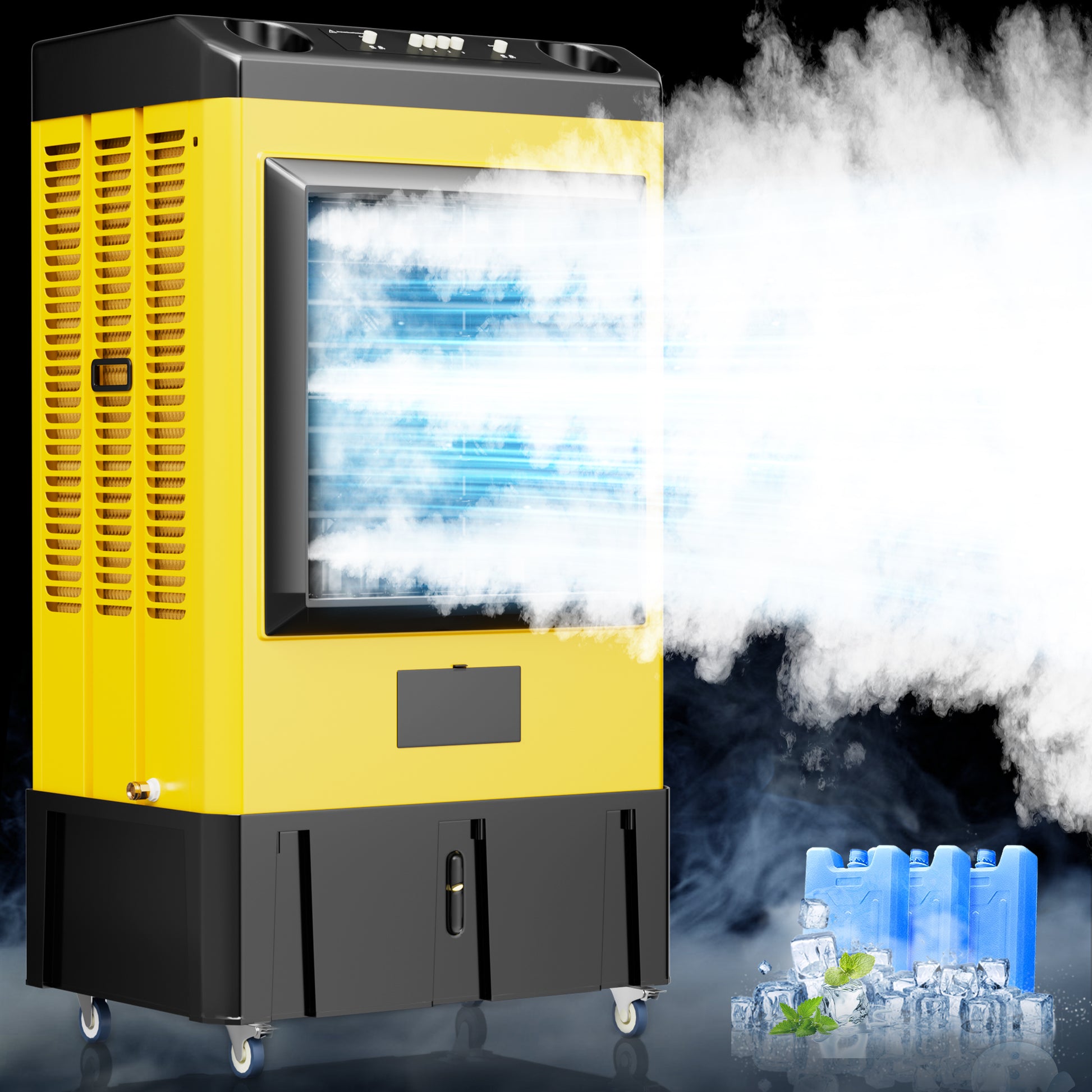 - 【3-IN-1 Function & 3 Air Intake Panels】 This 3-in-1 swamp cooler delivers flexible cooling with 3 modes—fan-only, water, or ice. Its triple air intake panels maximize evaporation for faster, stronger cooling, while the high-power motor ensures wide airflow coverage. Perfect for hot, dry climates, it provides energy-efficient relief in homes, offices, or outdoor spaces. The ice pack function boosts performance for instant chill, making the air cooler more effective than standard fans