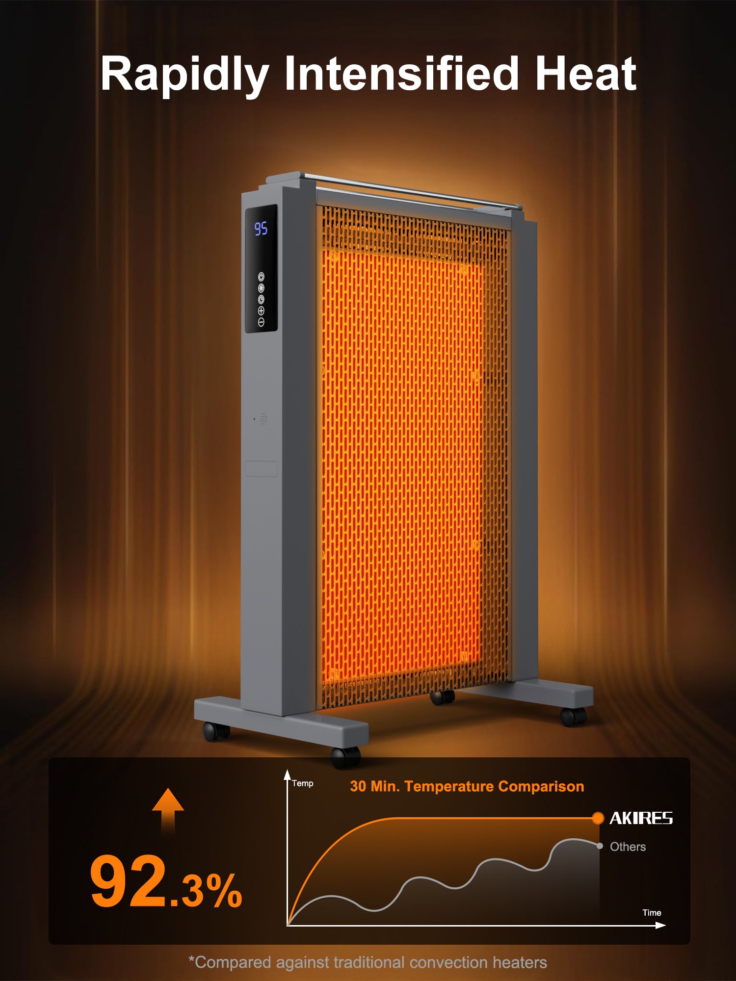 Fast Heating, Awesome Experience: The unique mica element of this heater can provide an impressive conversion efficiency of 99%. It spreads heat across a wide 180-degree angle, so even large rooms get warm fast and evenly in just seconds. Perfect for long-term use in your garage, basement, office, workshop, or bedroom. Plus, it has a built-in water tank to keep the air moist and comfy