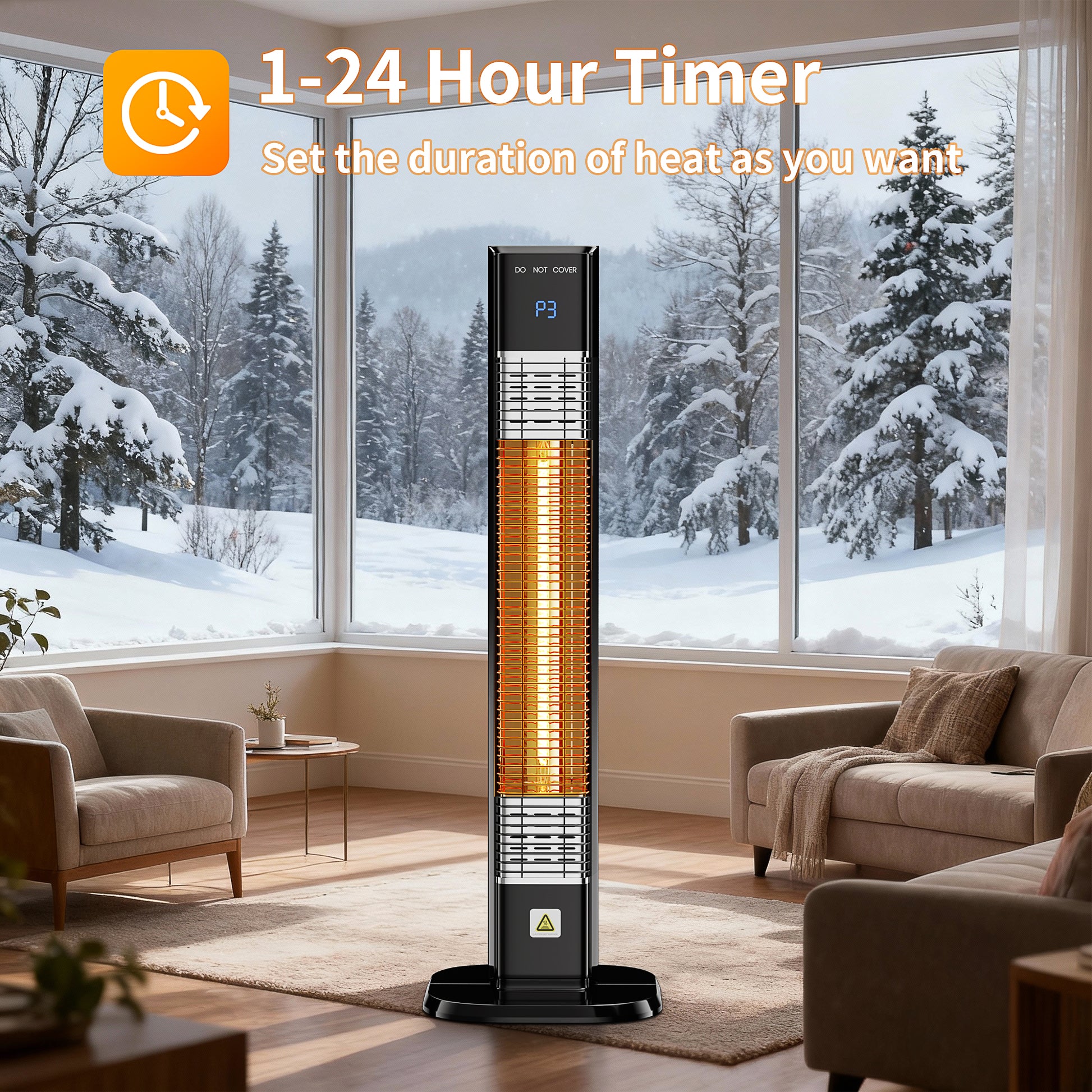 - 1-24 Hour Timer: With a built-in 1-24 hour timer function, you can preset the heating duration according to your schedule. Whether you want it to work for an hour while you enjoy coffee on the patio or run through the night in the garage, the timer helps save energy and avoids unnecessary power consumption.